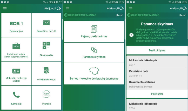EDS sistema galima naudotis per naršyklę arba mobilią VMI programėlę