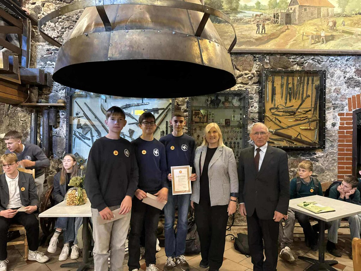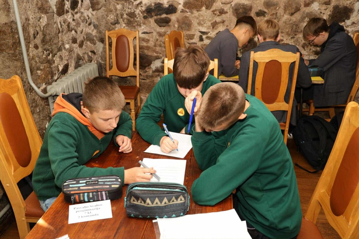 - 8 klasių grupėje – Pumpėnų gimnazijos komanda (A. Sivickas, B. Morkūnas, P. Zakarevičius, mokytoja J. Stapulionienė),