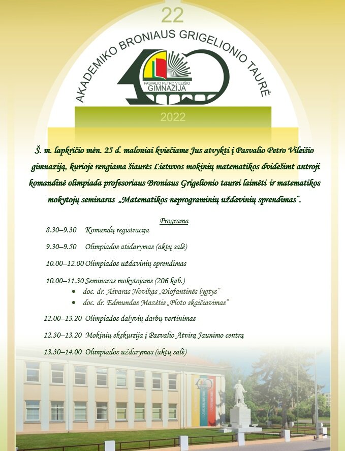 Kvietimas į matematikos olimpiadą B.Grigeliono taurei laimėti!