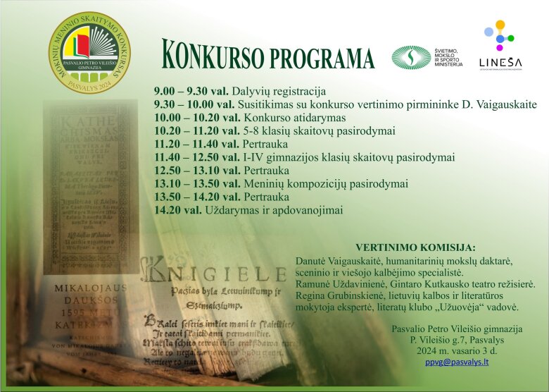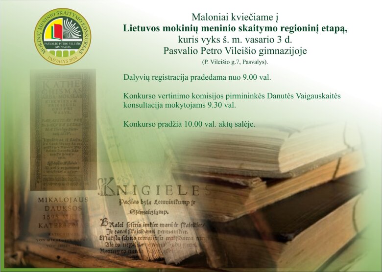 Kvietimas į regioninį Lietuvos mokinių meninio skaitymo konkurso etapą mūsų gimnazijoje!