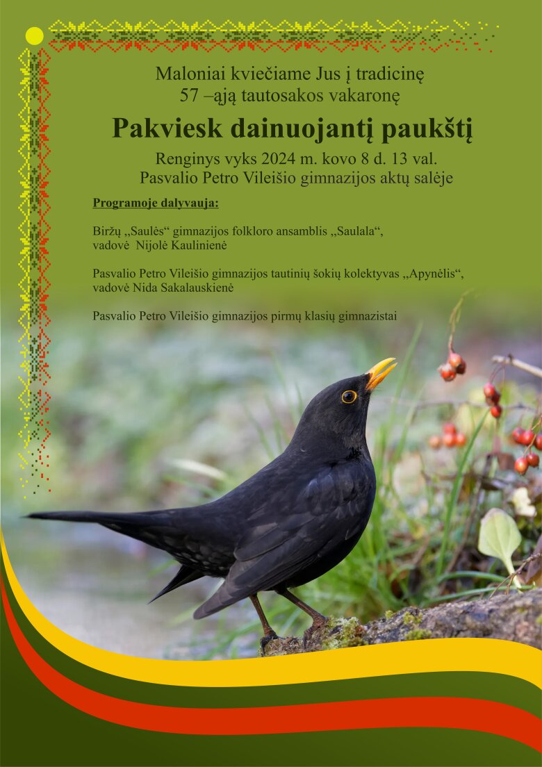Kviečiame dalyvauti 57-ojoje tautosakos vakaronėje „Pakviesk dainuojantį paukštį“