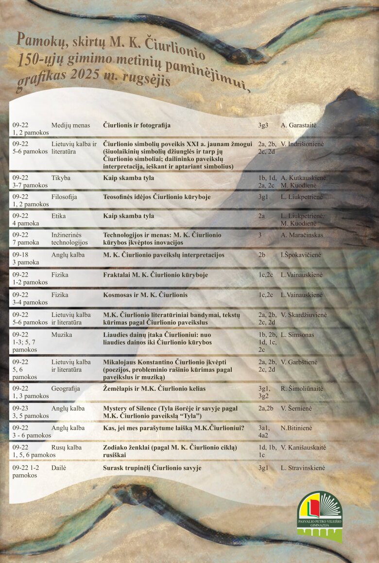 Pamokos, skirtos M. K. Čiurlionio 150-ųjų gimimo metinių paminėjimui