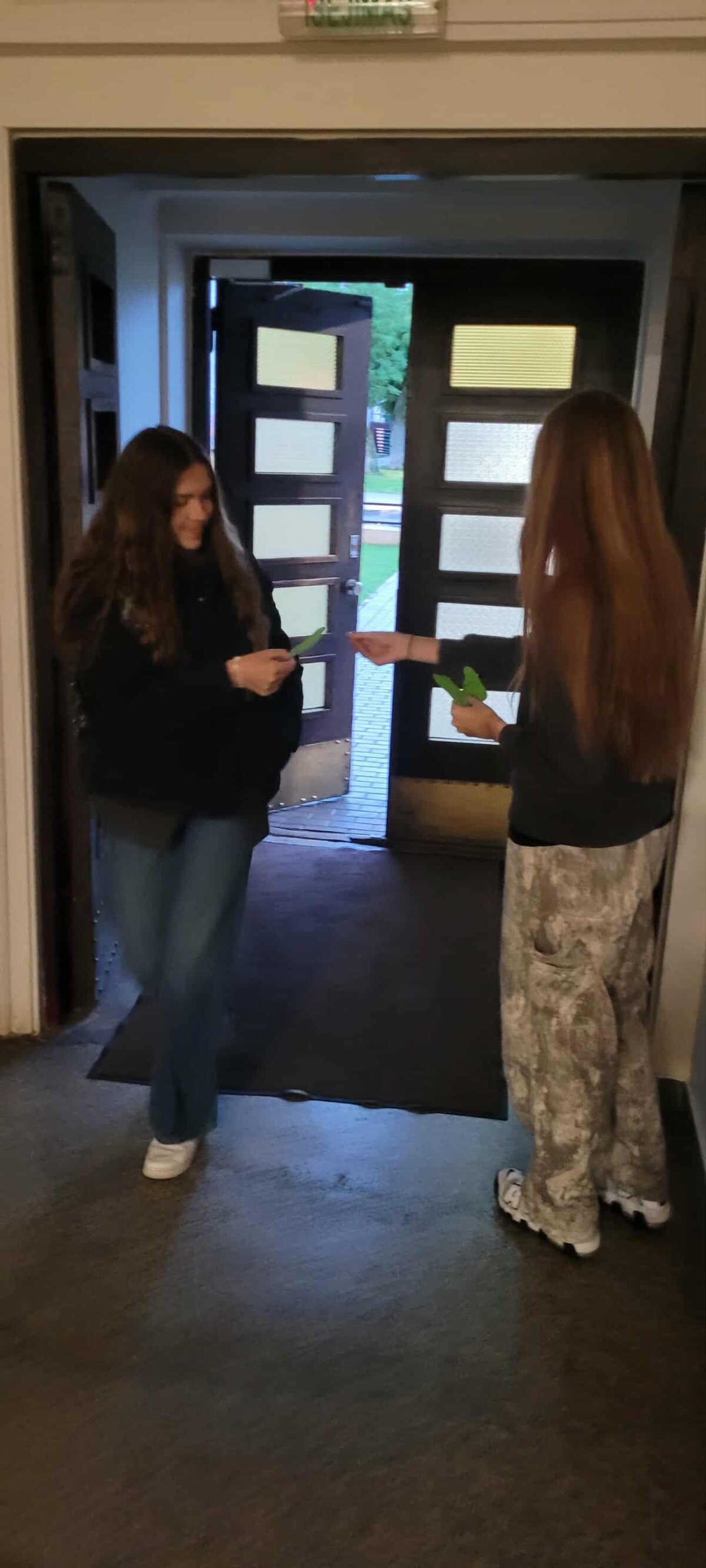 Visą savaitę ant kabinetų durų nutūpę žali paukšteliai kvietė gimnazijos bendruomenę prisiminti, kokios veiklos padeda stiprinti emocinę savijautą, dalintis gera nuotaika ir skleisti šilumą aplinkiniams.