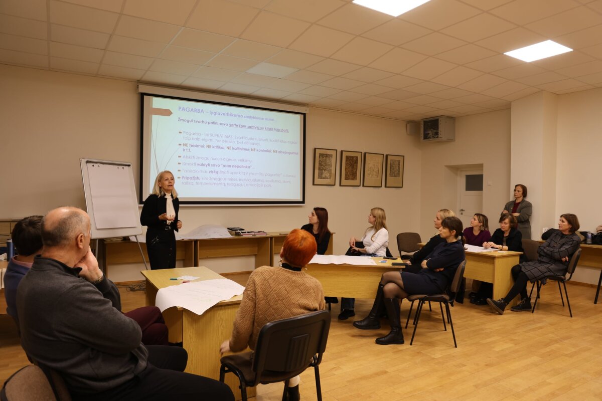 Lapkričio 11 d. mokytojai turėjo galimybę susitikti su ilgamete edukacijos, tarpkultūriškumo ir emocinio intelekto ugdymo specialiste Rolanda Šliažiene-West. Susitikimas tema „Bendravimo ir bendradarbiavimo iššūkiai. Kodėl emocinis raštingumas toks svarbus?“ vyko 110 kabinete.