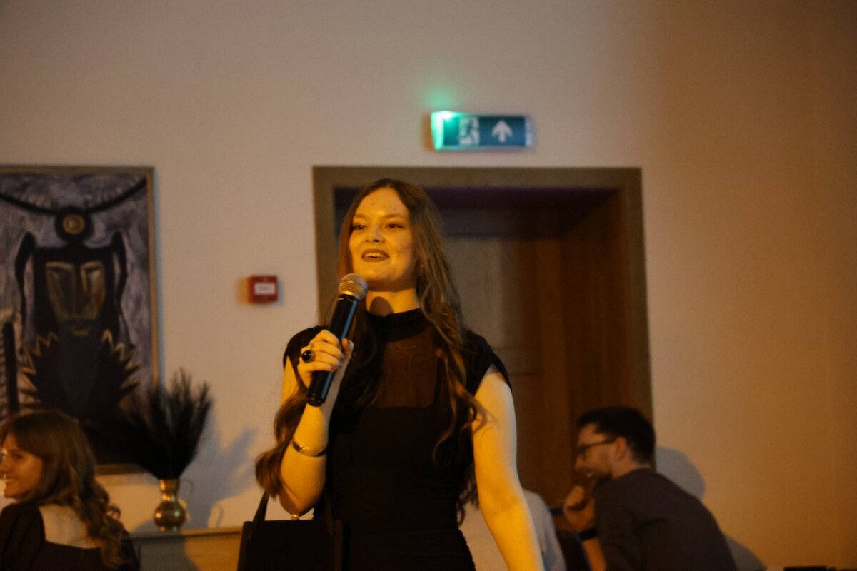 Jaukią ir elegantišką kazino atmosferą kūrė Ilma Juknevičiūtė, kurios pianino melodijos lydėjo šventės akimirkas, suteikdamos vakarui subtilumo ir šilumos. Muzika tapo tarsi fonu prisiminimams apie kartu praleistus metus bei artėjančius pokyčius. Ypatinga vakaro dalimi tapo ir abituriento Eriko Atstupėno sukurta bei perkurta daina apie abiturientus – skambėję žodžiai ir melodija jautriai atspindėjo dvyliktokų patirtis, draugystes ir artėjančio atsisveikinimo nuotaiką.