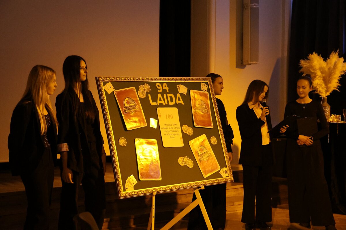 Šimtadienio vakaras priminė kazino žaidimą: kiekvienas metas – tarsi nauja korta, o sėkmę lemia ne tik atsitiktinumas, bet ir drąsa, pastangos bei tikėjimas savimi. Ši šventė tapo dar vienu gražiu prisiminimu, lydėsiančiu abiturientus jų kelionėje link brandos egzaminų ir naujų pradžių.